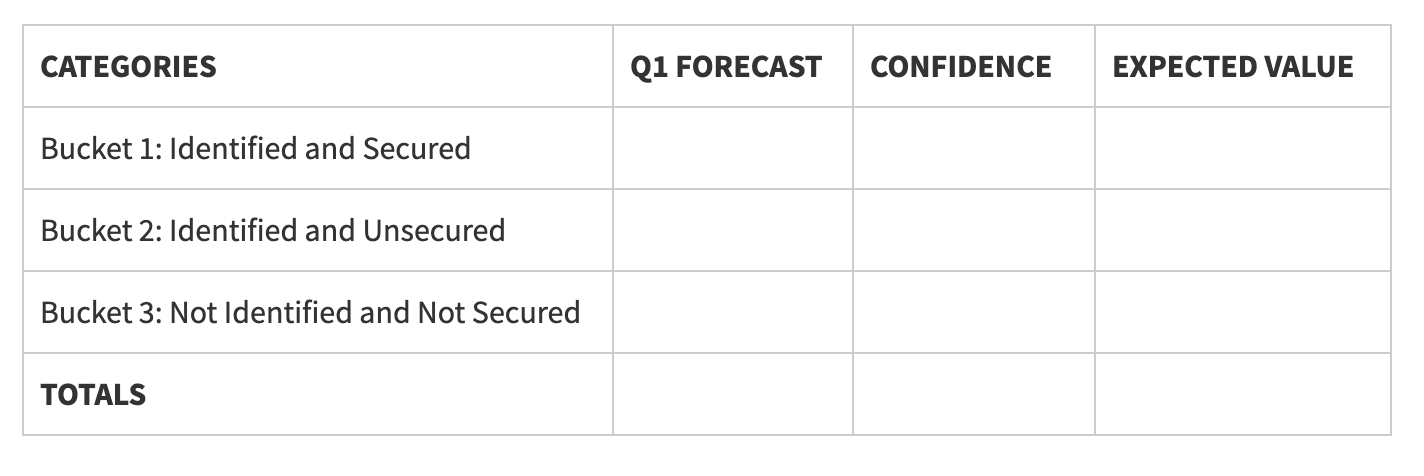 In the Q1 FORECAST column, you’re providing your estimate for the total revenue expected in each respective bucket.