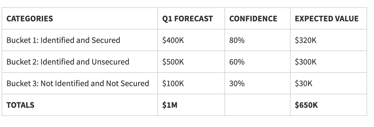 EXPECTED VALUE is calculated as follows: Forecast * Confidence.